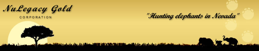 Upon successfully identifying a gold resource, follow-up delineation drilling budgets will be initiated to optimize the valuation. Once the Prospect’s value is established NuLegacy will seek to vend the resource for stock or cash, or merge with an appropriate and qualified gold producer to form a strategic partnership for its development.