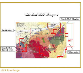 The consolidated Red Hill Prospect is located in the south-east end of the Cortez segment in close geological proximity (just over the hill 13 miles) to the famous 21 million ounce Pipeline mine which Dr. Steininger, Director & COO, NuLegacy Gold, is credited with discovering in 1998.