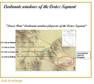 The consolidated Red Hill Prospect is located in the south-east end of the Cortez segment in close geological proximity (just over the hill 13 miles) to the famous 21 million ounce Pipeline mine which Dr. Steininger, Director & COO, NuLegacy Gold, is credited with discovering in 1998.